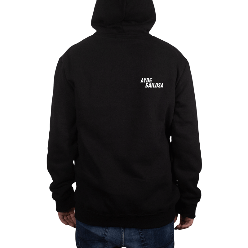 Μαύρο Hoodie Baildsa με το logo στο μέρος της καρδιάς και το Ayde Baildsa στο πίσω.