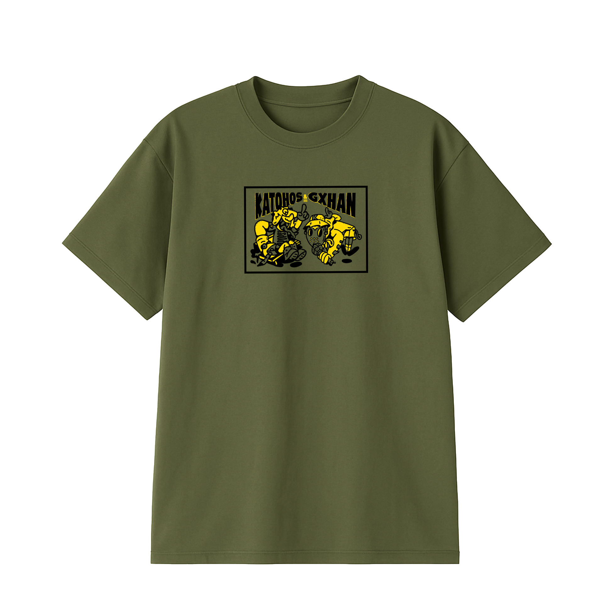 Λαδί T-Shirt Gxhan x Katohos με γραφιστικό σε στάμπα στο μπροστά και στο πίσω μέρος.
